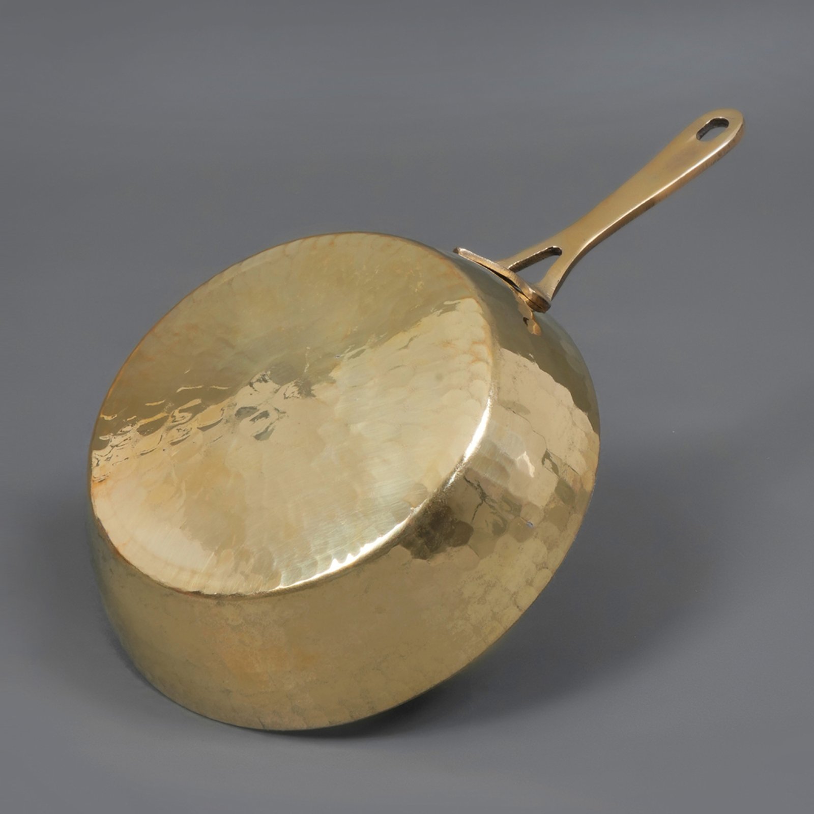 This brass fry pan is made with hands in the perfect shape of a very deep bowl, making it the ideal one for cooking omelets, rich gravies, and the favorite noodles. This handmade product is high-quality brass to heat uniformly during the cooking processes, and for added effect, a naturally nonstick tin lining is included for ease of food release and cleaning. A very traditional yet functional addition to your kitchen!